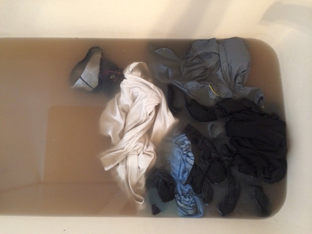 When I get to my room I head to the shower. I stand there for ten minutes and I still see dirt swirl down the drain. After my shower, I wash my clothes and am again amazed how much dirt, sweat, and sunscreen have accumulated.