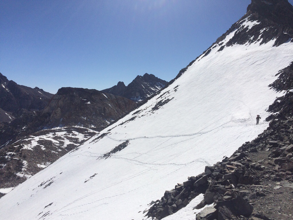 Day 51 Jun 22, 2014 • Brendan Dahl Day 51 6/3 Mile mark 789.8-802.6 Base of Glen Pass to South of Pinchot Pass I didn’t recognize solitude after his shave and buzz in Bishop.