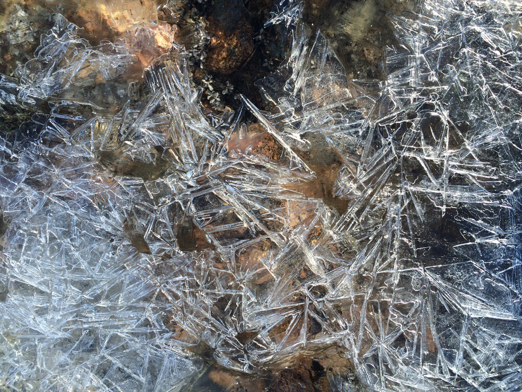 A section appears where the trail keeps going straight, but the tracks in the snow make a beeline down the mountain. The mountain side here is at a steep pitch and forty feet down are some rocks poking up up from the snow. I think to myself that it would be nice to have my ice axe here to anchor uphill as we traverse, but I chose not to bring it. My hiking buddies go one by one and make it across without issue.