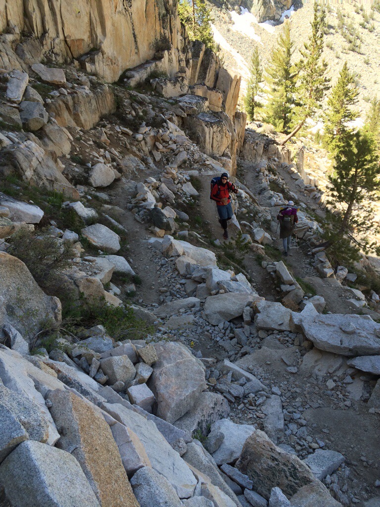 The rest of the descent goes without a hitch and the snow recedes as we drop in elevation. We drop and drop some more. The switchbacks in some spots seem to nearly be stacked on each other. Lunch comes and goes and we begin to gain altitude again.