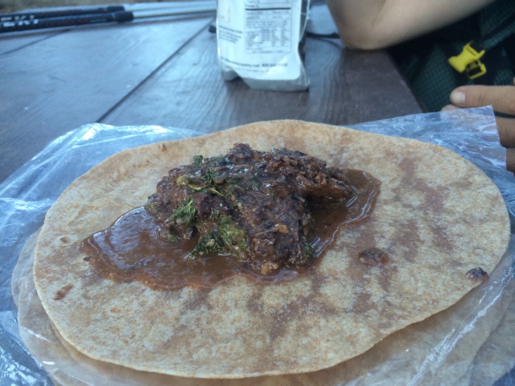 Salty’s dinner. Healthier and tastier than mine, but it looks vaguely like something I bury in a hole everyday.