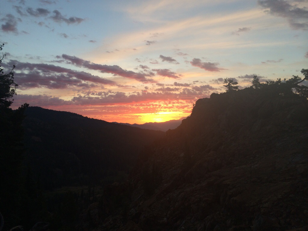 The alarm clock(Salty unzipping her food bag) goes off at 5:30am and I roll to my side to add some water to my granola and carnation instant breakfast. I roll to my other side and see a sky dotted with clouds on fire from the rising sun. The view is enough to stir me from my bed for a better look.