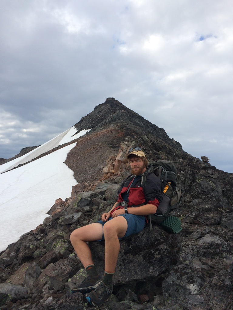 Juicy and I sitting before we take a little side trip up to the top of this ridge(seen in the background).
