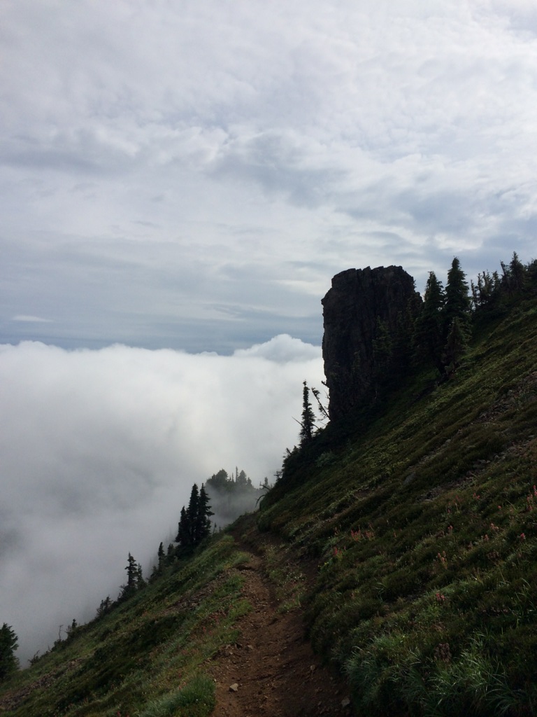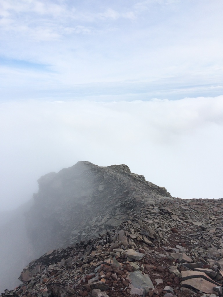 Starting the knifes edge. The fog unfortunately covered up many of the views as we descended.