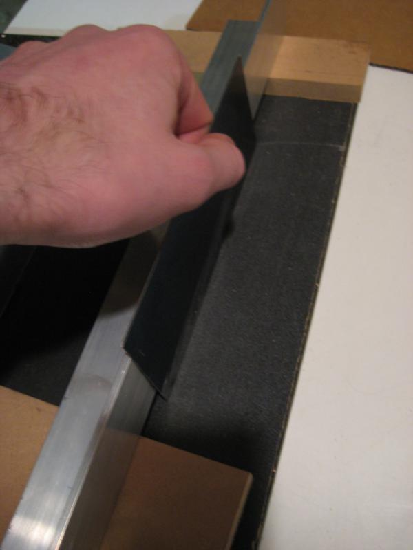 I then polished the edge on a granite tile that has 5 grades of sandpaper going from 220 to 1500. To guide the edge I used a piece of angle aluminum, but anything that would keep the edge at 90 degrees would work.