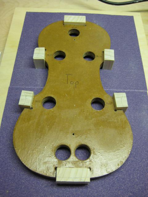 I then cut the blocks down to a more manageable size. My first attempt at gluing the blocks failed miserably because there was too much polyurethane in the block recesses where the glue went, so it did not adhere. I sanded down the block recesses and tried again with much better results. I don’t have a picture but on the bottom of the mold are three screws that raise the mould up so the blocks are centered.