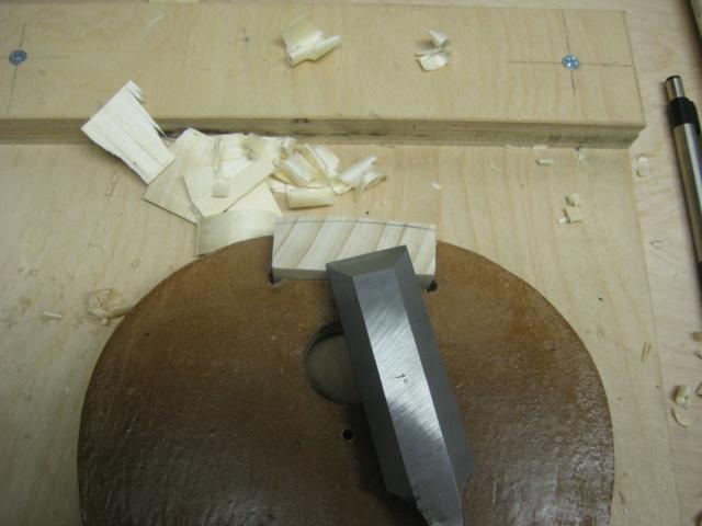 I then began shaping the blocks so they match the pattern. For now, I’ll only do the top, bottom, and insides of the the inner blocks. For the top and bottom blocks I used a chisel and some sandpaper. This was the first time I got to try out my chisels after sharpening them on a Veritas Power Sharpener that I picked up on Craig’s List for cheap. I can literally shave with them now they are so sharp. Even though they were so sharp, I made a minor mistake cutting down one of the blocks and went slightly into the waste area. I think this is because I didn’t get the grain orientation completely correct when I cut the blocks. Live and learn.